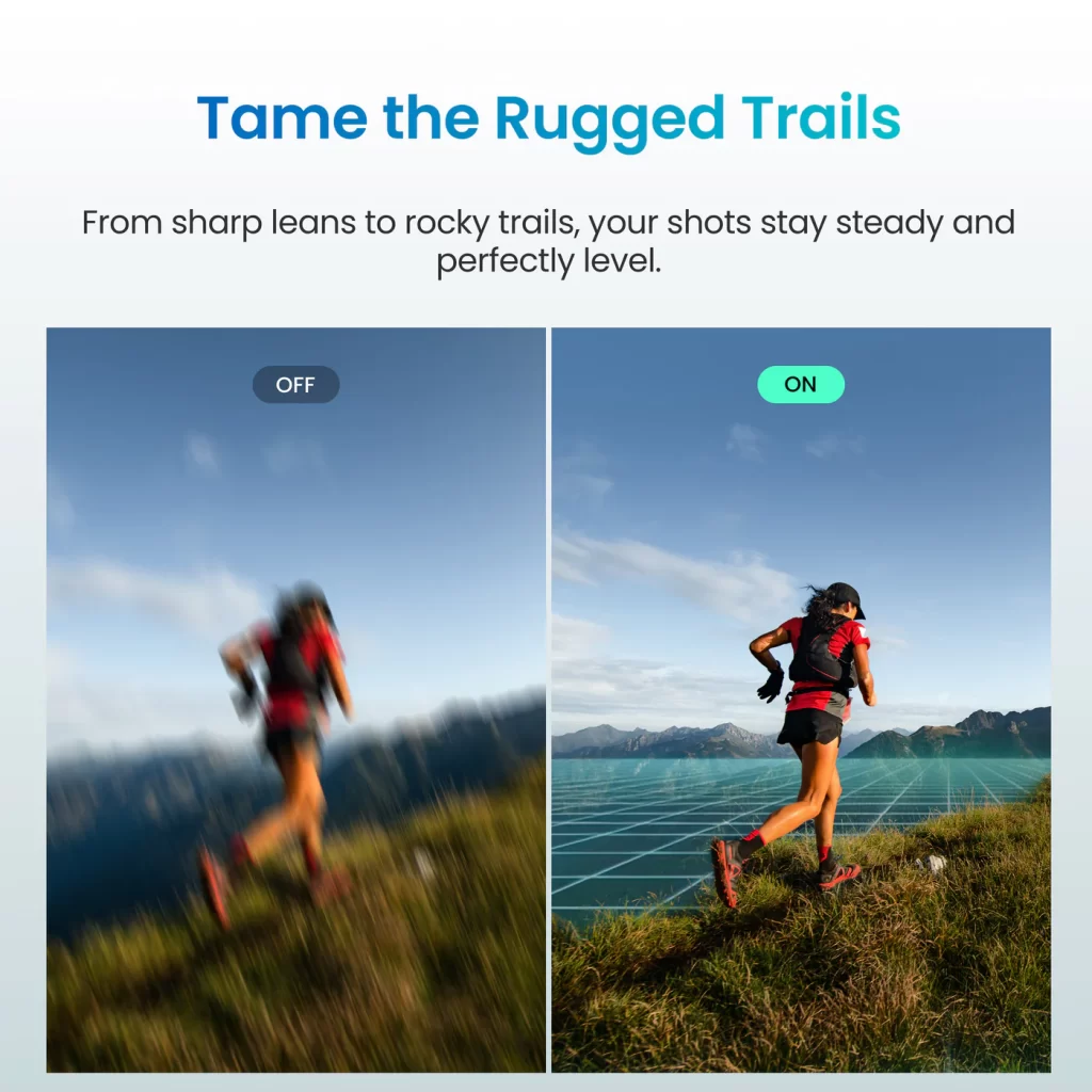 Handheld stabilization is hard. Hands-free stabilization is harder. When you’re walking, running, cycling, or just moving naturally, your body creates constant micro-movements that translate directly into shaky footage—unless the camera actively compensates.